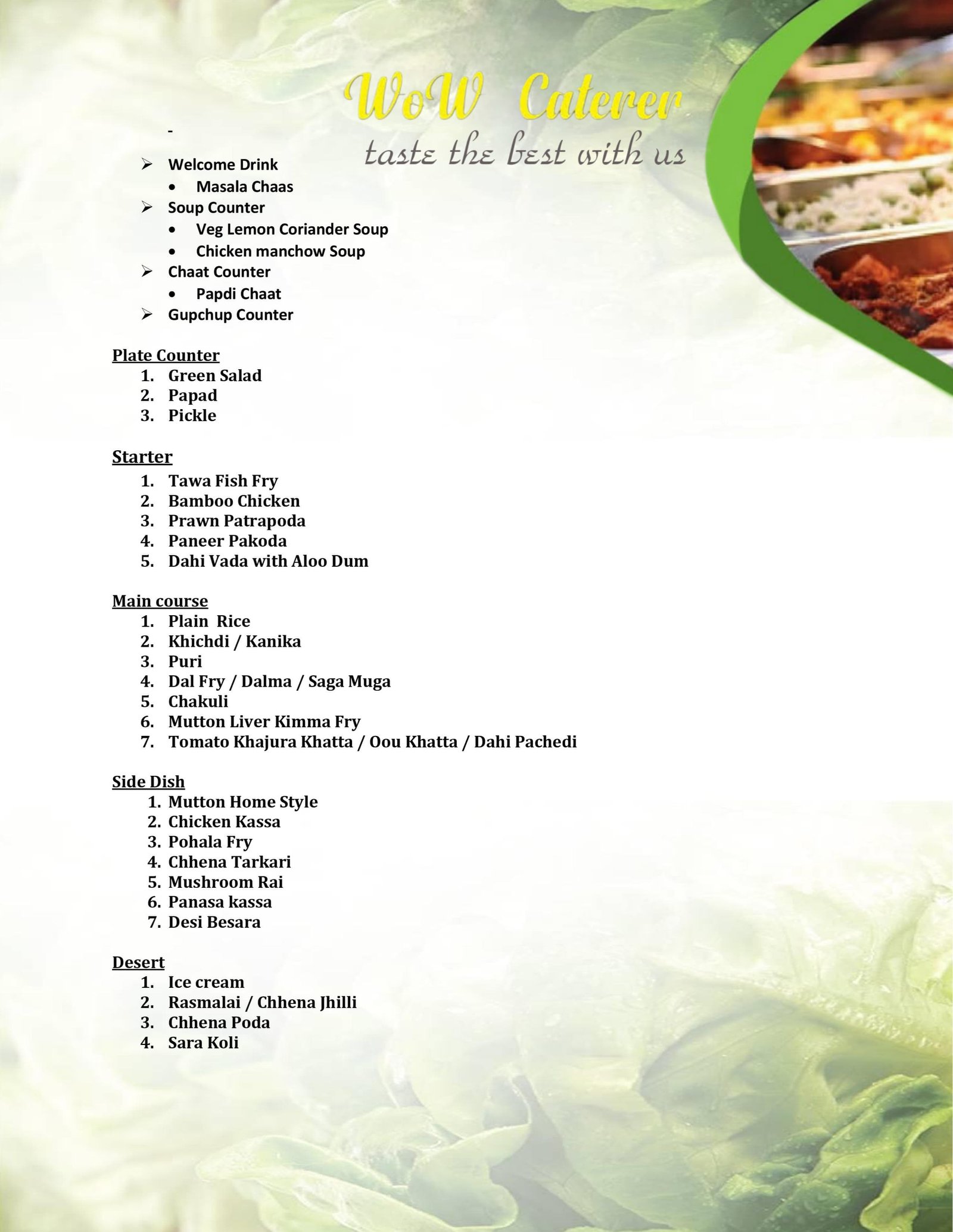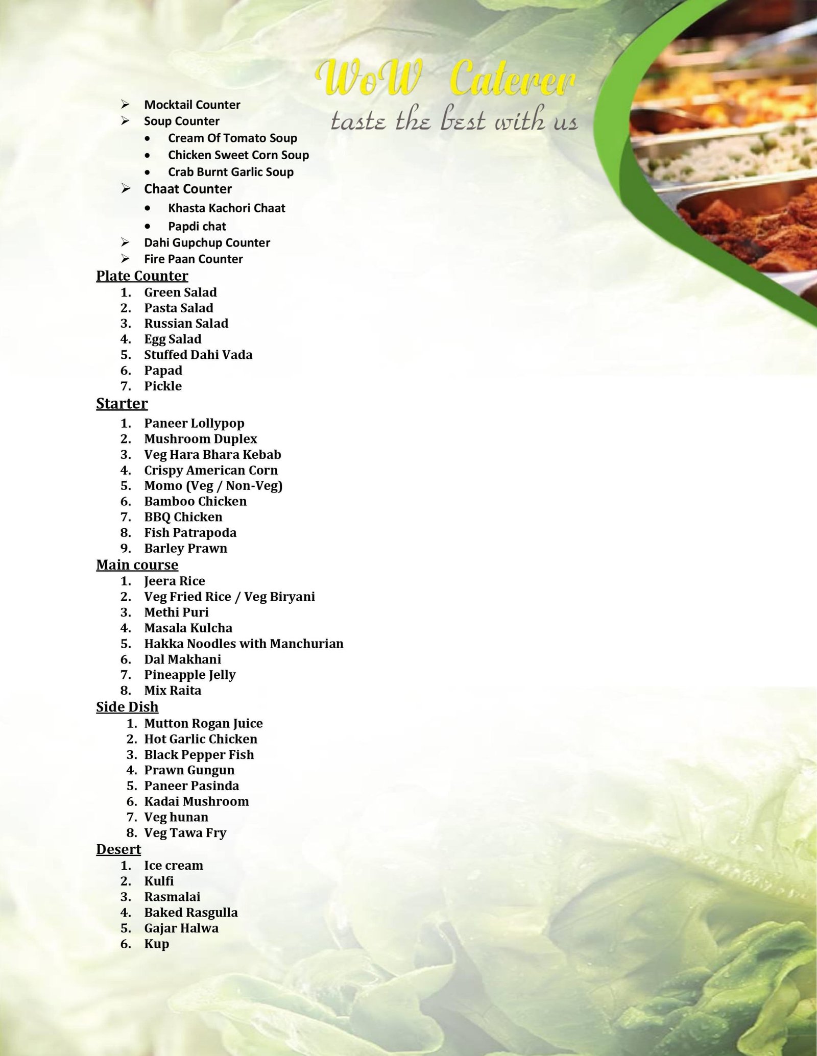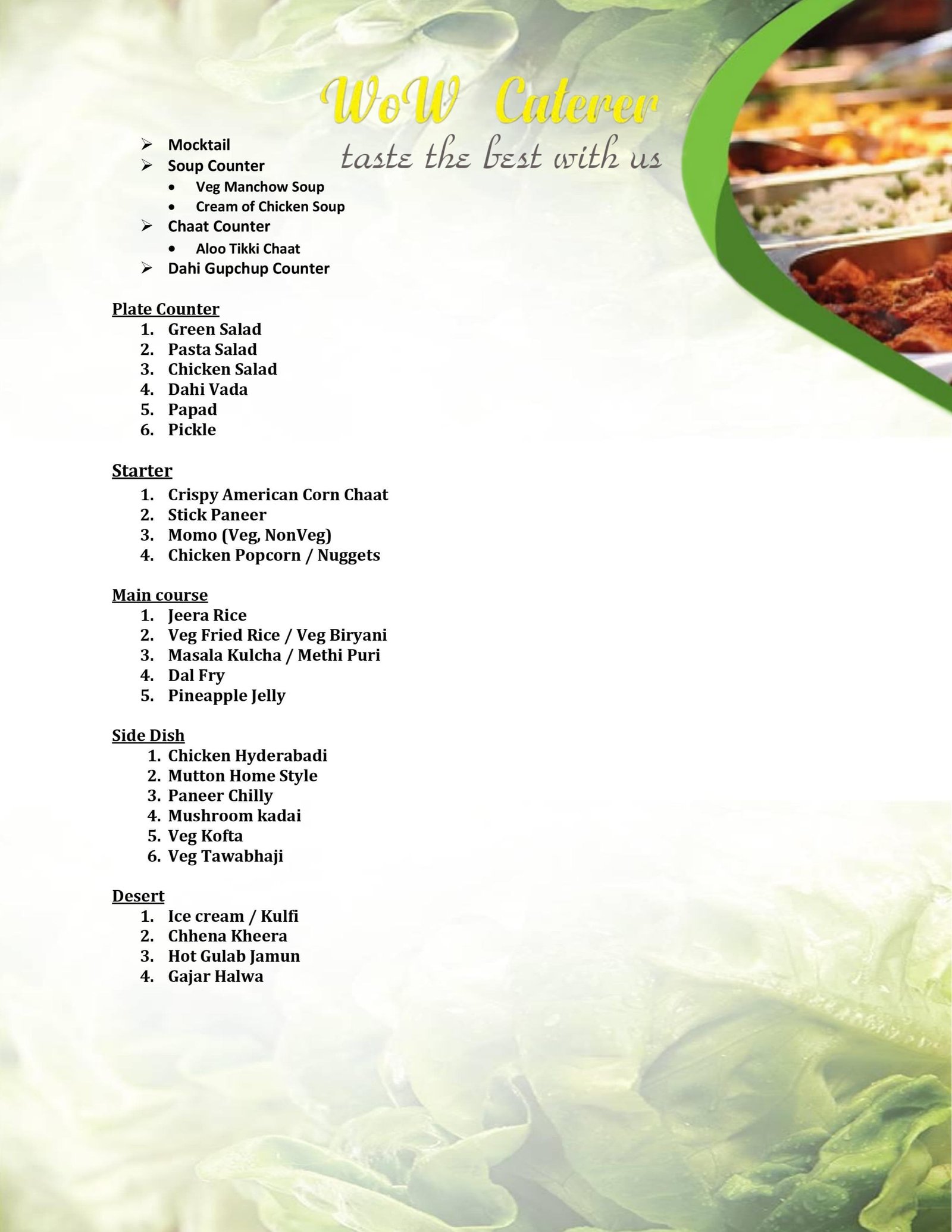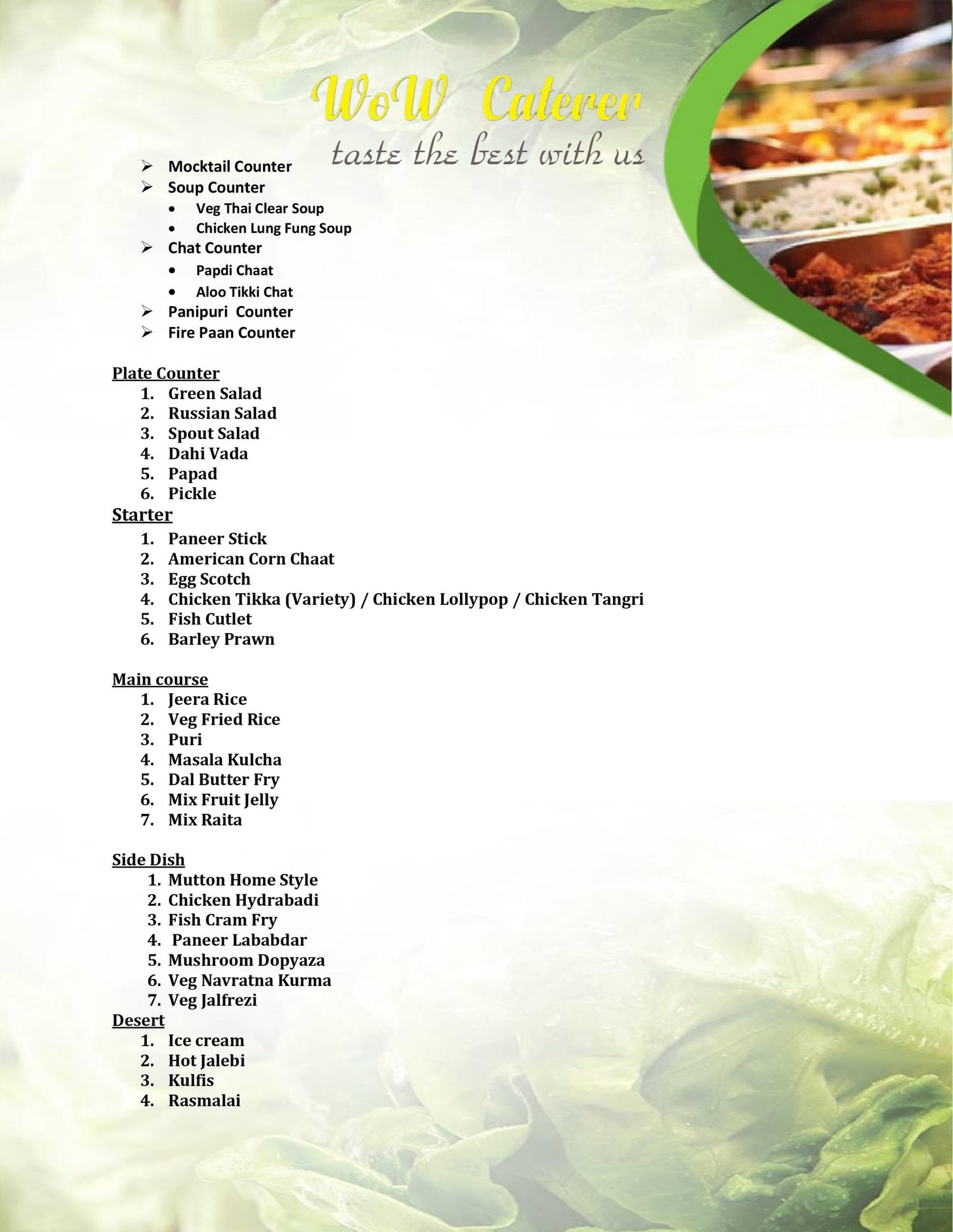 x Wow Caterer - Menu Packages